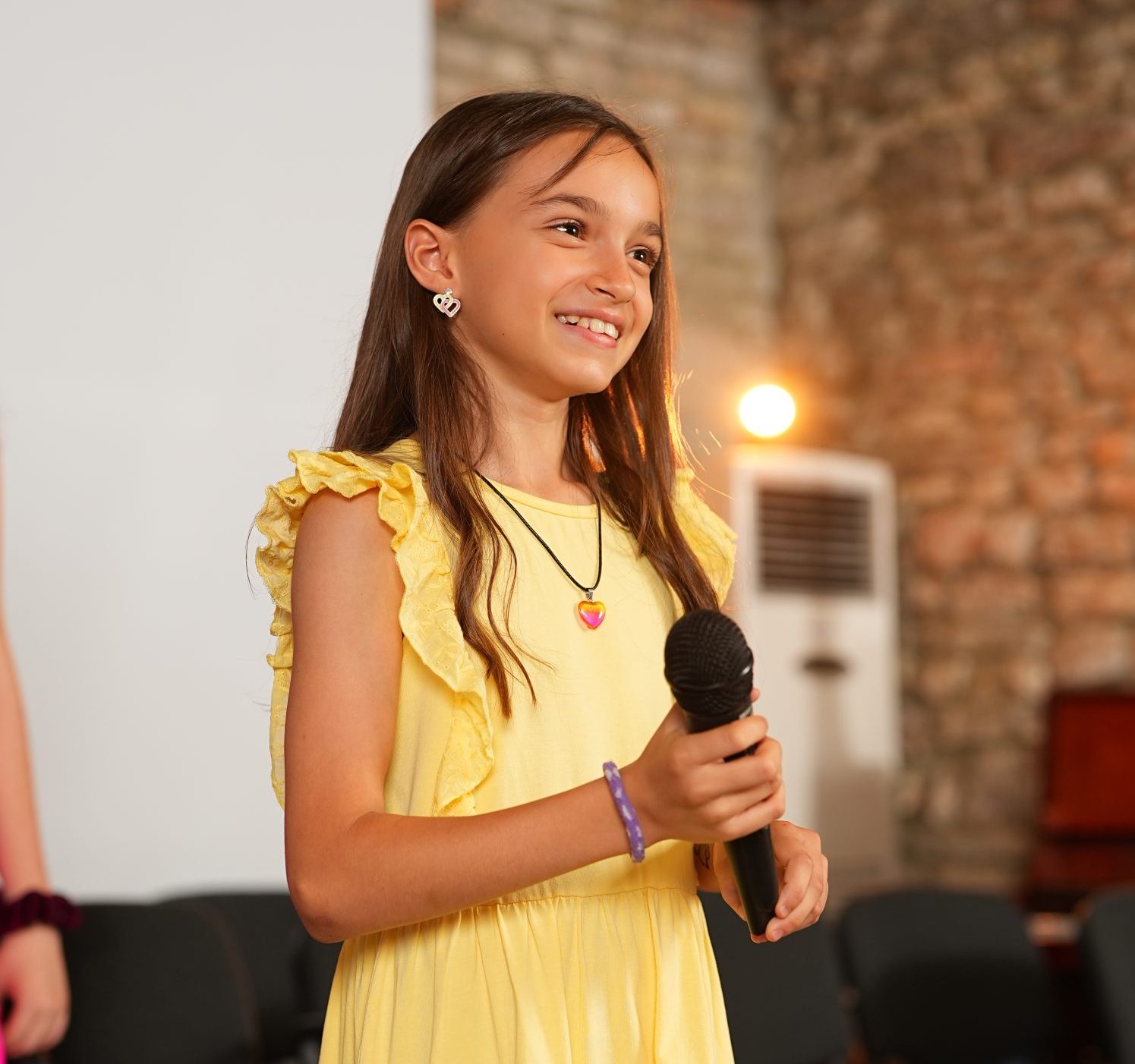 Обичам да посещавам Музикална школа „Моника Ла Ре Ми“, защото искам да се науча да пея и е много забавно.